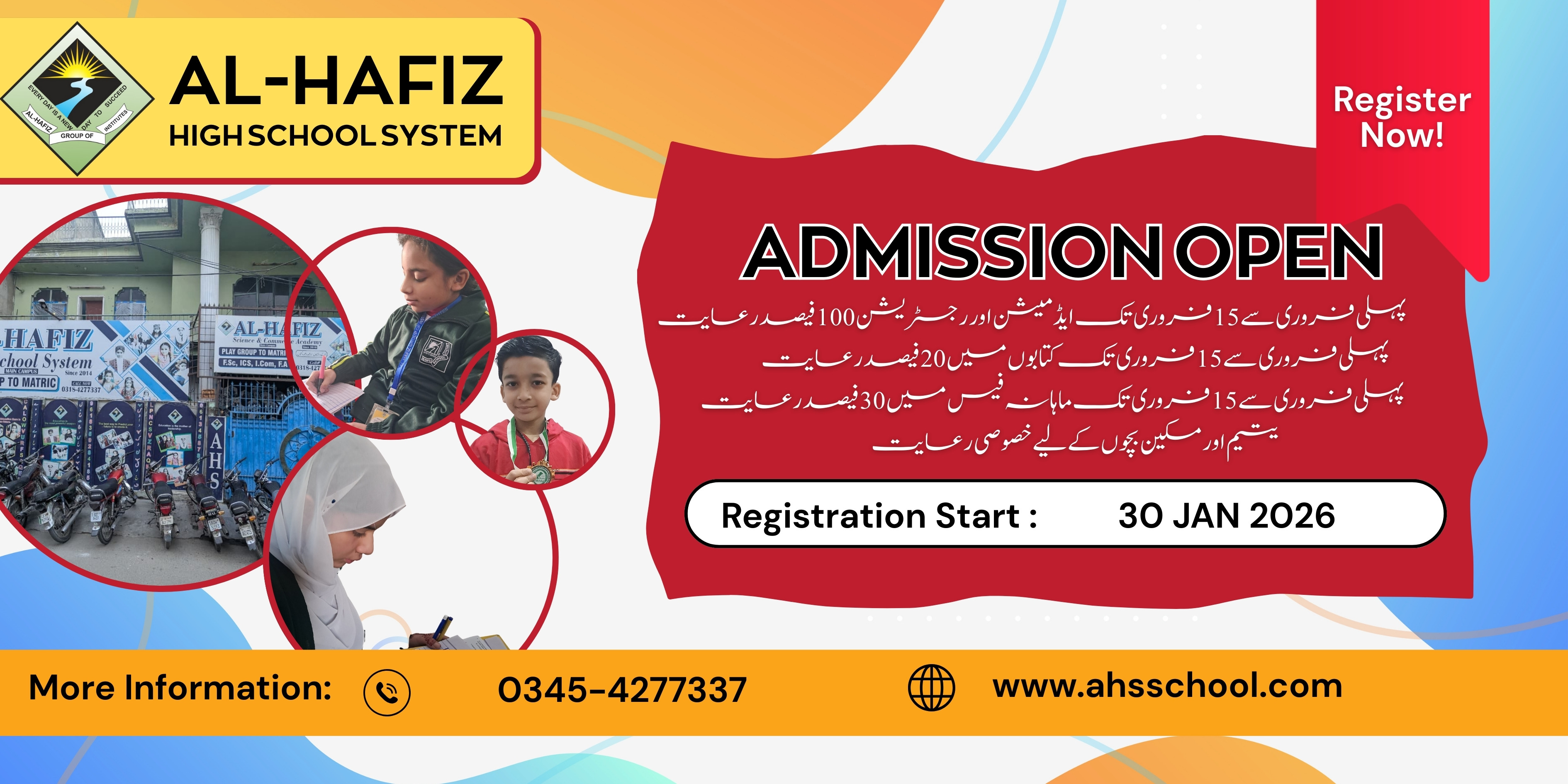 The humble journey that started from 2010 as Al-Hafiz Science & Commerce Academy took a giant leap with the stern efforts, Dedication and total Commitment of Mr. Tariq - the Chairman of AHA who made it possible to earn a great name. As per his Instruction our students have always got distinctive positions in, Matric and Intermediate exams in Lahore boards as well. AHA Group strongly believes in developing youth of the nation with creative minds, a sense of understanding and compassion for others, and the courage to act on their beliefs.