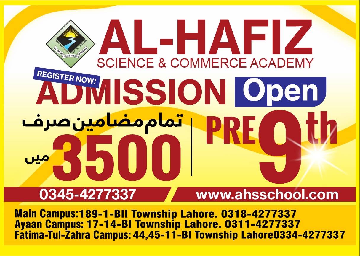 The humble journey that started from 2010 as Al-Hafiz Science & Commerce Academy took a giant leap with the stern efforts, Dedication and total Commitment of Mr. Tariq - the Chairman of AHA who made it possible to earn a great name. As per his Instruction our students have always got distinctive positions in, Matric and Intermediate exams in Lahore boards as well. AHA Group strongly believes in developing youth of the nation with creative minds, a sense of understanding and compassion for others, and the courage to act on their beliefs.